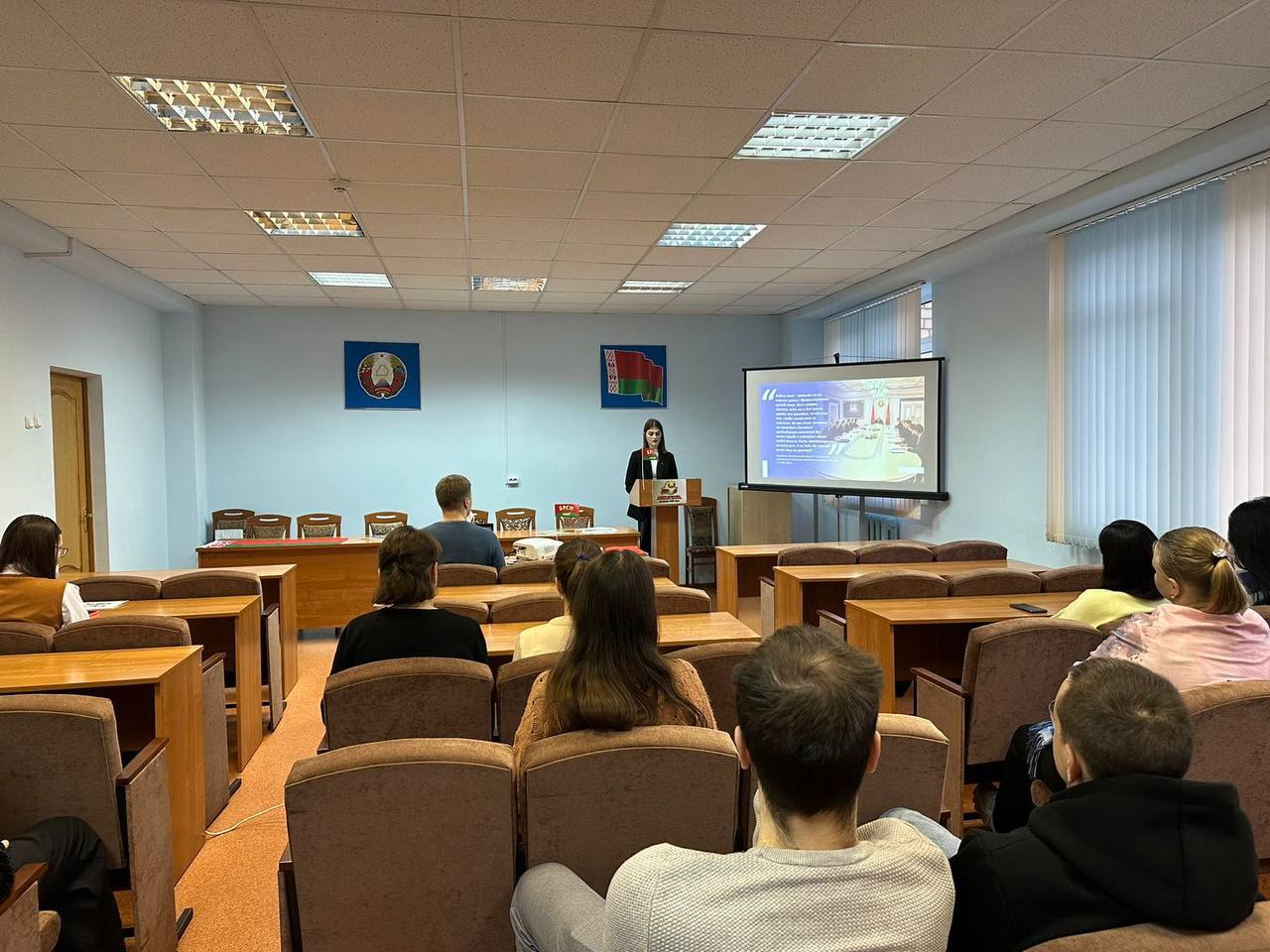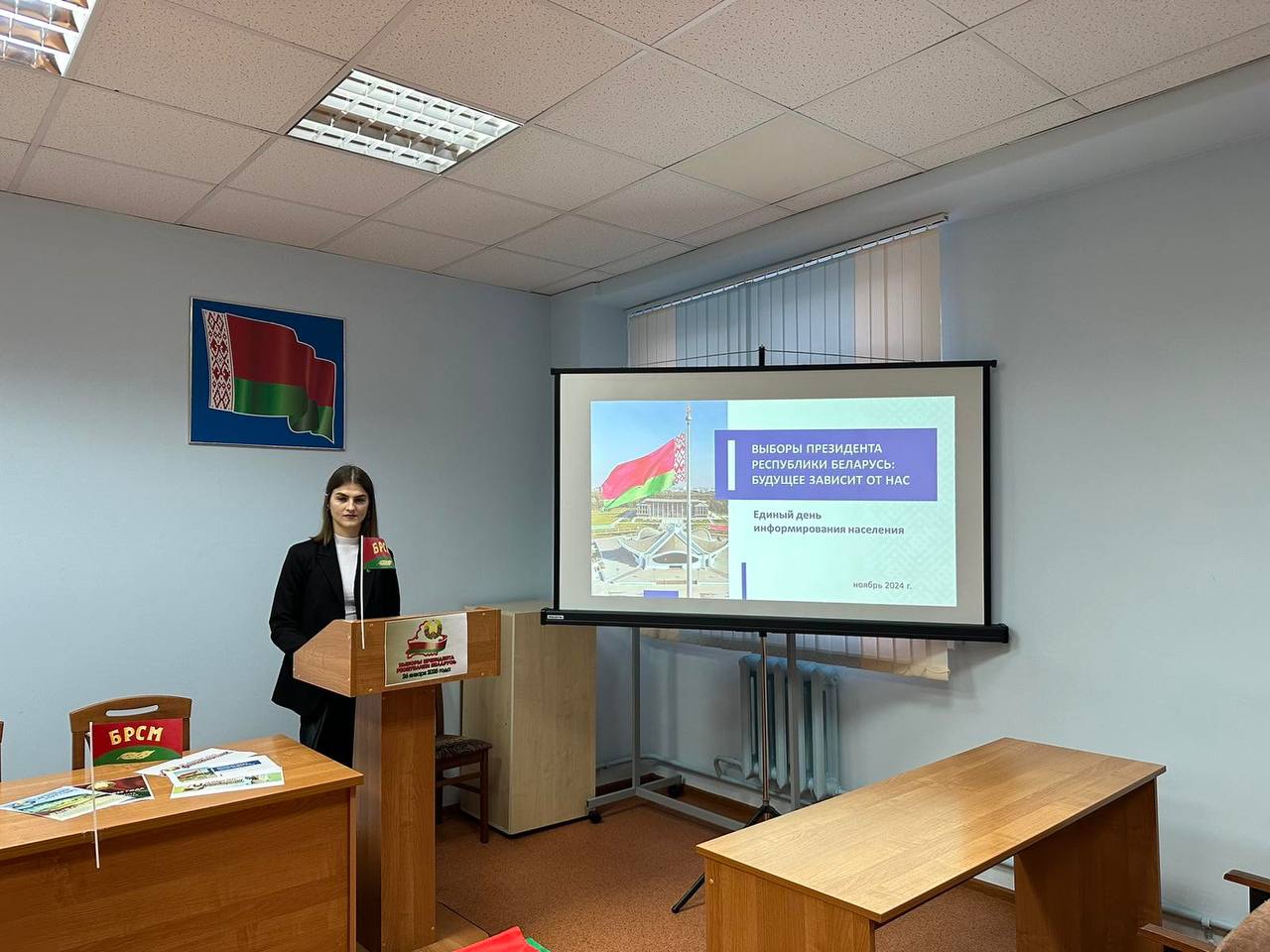 21 ноября 2024 года в Главном статистическом управлении Минской области состоялся единый день информирования, посвящённый проходящей в Республике Беларусь электоральной кампании. С докладом на тему «Выборы Президента Республики Беларусь: «Будущее зависит от нас» перед молодёжью Главного управления выступил второй секретарь Минского районного комитета ОО «БРСМ» Куприянчик Карина Александровна.
