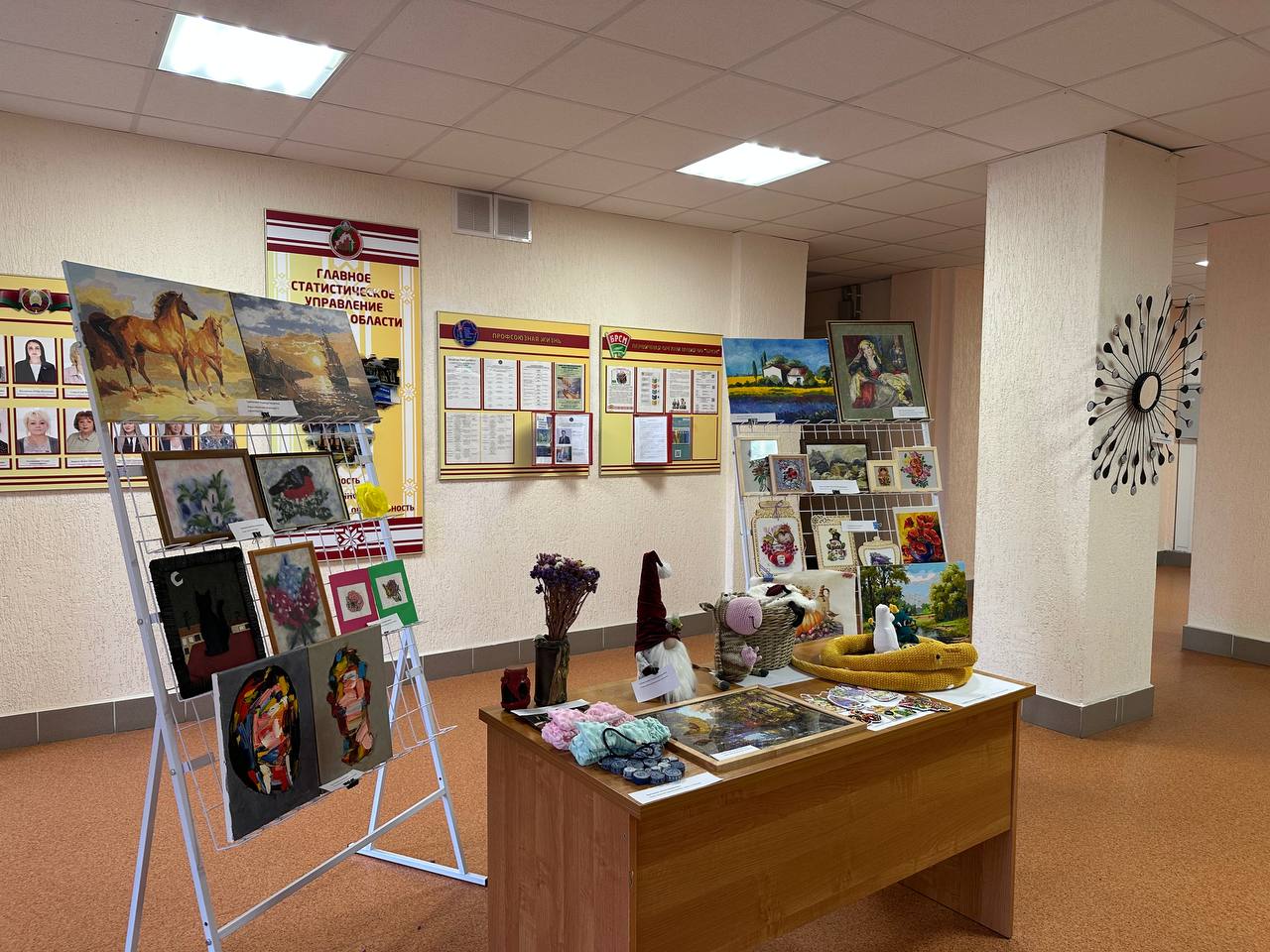 В рамках проведенной акции были представлены работы сотрудников Главного управления, сделанные собственными руками (поделки из различных материалов, картины, вышивка, вязанные изделия и многое другое).